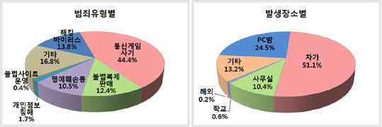 ¹üÁ˸¦ ÀúÁö¸£´Â Àå¼Ò´Â ÁÖ·Î ÀÚ°¡(51.1%)ÀÌ°í °èȹÀûÀÎ ¹üÇàÀÇ °æ¿ì À͸íÀÇ IP¸¦ ÀÌ¿ëÇÒ ¼ö ÀÖ´Â PC¹æ(24.5%)¿¡¼ÀÇ ¹ß»ý·üÀÌ ³ô¾Ò´Ù.