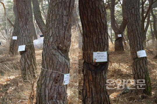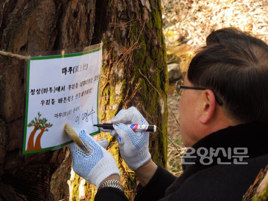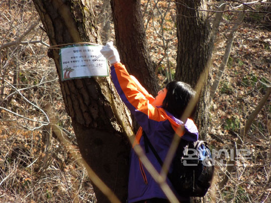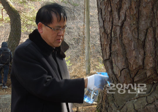 ÀÌ¾î »ê¸²È¯°æ¿¬±¸¼Ò Ãæ³²°ø¸³³ª¹«º´¿ø ±è¿µÀç ¹Ú»ç°¡ ³ª¹« Ä¡À¯¹æ¹ýÀ» ¼³¸íÇßÀ¸¸ç, ¸ðµç Âü°¡ÀÚµéÀº Áö±Þ¹ÞÀº ¼Òµ¶¾àǰ(¾ËÄÝ ºÐ¹«±â)°ú º×, À̸§Ç¥¸¦ µé°í 2ÀÎ 1Á¶, ¶Ç´Â 4ÀÎ 1Á¶·Î Á¶¸¦ Áö¾î ¼Ò³ª¹« ½£À¸·Î À̵¿ÇØ º×À¸·Î »óóºÎÀ§ Áß °¡Àå ¹Ù±ùÂʺÎÅÍ Åо ÈÄ µå·¯³ ºÎÀ§¿¡ ¾ËÄÝ ºÐ¹«±â¸¦ ºÐ»çÇØ »óó¸¦ ¼Òµ¶Çß´Ù. À̾î Âü°¡ÀÚµéÀº ¼Ò³ª¹«ÀÇ À̸§ÀÌ ´ã±ä ¸íÆÐ¿¡ ÀÚ½ÅÀÇ À̸§À» ½á³Ö¾î ³ª¹«¿¡ ¸Å´Þ¾Ò´Ù.