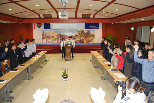 ¾Æ»ê°æÂû¼¿¡´Â ¼¾à½ÄÀ» ¸¶Ä£ ÈÄ Àü °æÂû°üµéÀ» »ó´ë·Î ÀαǼ¾à¼¿¡ ÀÚÇÊ ¼¸íÇØ Á¦ÃâÅä·Ï ÇØ ¡®ÀαǰæÂû¡¯¿¡ ´ëÇÑ °ø°¨´ë¸¦ Çü¼ºÇϰí ÀαǺ¸È£¸¦ À§ÇÑ È®°íÇÑ ÀÇÁö¸¦ ´ÙÁüÇÏ´Â °è±â·Î »ï¾Æ ÀαǼöÈ£ ±â°üÀ¸·Î¼ ¿ªÇÒ¿¡ ÃÖ¼±ÀÇ ³ë·ÂÀ» ´ÙÇÏ°Ú´Ù°í ¹àÇû´Ù.