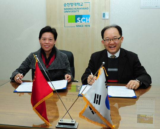 ¼øÃµÇâ´ëÇб³(ÃÑÀå ¼±³ÀÏ)°¡ Áö³ 3¿ù 20ÀÏ ¿ÀÀü 9½Ã30ºÐ ±¹Á¦±³À°±³·ùó Á¢°ß½Ç¿¡¼ Áß±¹ ¾ÈÈÄÀ̼º¿¡ À§Ä¡ÇÑ ¸¶¾È¼¢½Ã¿Ü±¹¾îÇб³(Ø©äÓߣã¼èâÏÐåÞùÊÎè)¿Í Çлý ±³·ùÇù¾àÀ» ü°áÇß´Ù.