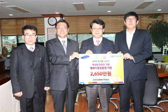 »ï¼ºµð½ºÇ÷¹ÀÌ´Â ¸Å³â ¸íÀý ¶§¿Í ¿¬¸»¿¡ ±èÀå±èÄ¡¸¦ Áö¼ÓÀûÀ¸·Î ÈÄ¿øÇϰí ÀÖÀ¸¸ç, º¹Áö°ü Áö¿ø, ÀڸŸ¶À» °á¿¬Áö¿ø, Àú¼ÒµæÃþ ÀÌ»çÁö¿ø µî ´Ù¾çÇÑ È°µ¿À¸·Î ¾Æ»ê½Ã ¾î·Á¿î ÀÌ¿ôµé¿¡°Ô »ç¶ûÀ» ÀüÇϰí ÀÖÀ¸¸ç, »çȸ°øÇåÈ »ç¾÷¿¡ ¾ÕÀå¼°í ÀÖ´Ù.