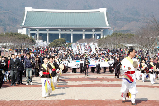 À̳¯ ´ëÇüűر⸦ ¾Õ¼¼¿ì°í Á¶¼±¹ÎÁ·´ëÇ¥ 33ÀÎÀÇ ¸ð½ÀÀ» ÇÑ Á¾±³, »çȸ, ´Üü ´ëÇ¥¿Í ½Ã¹ÎµéÀÌ Å±ر⠹°°áÀ» ÀÌ·ç¸ç ¸¸¼¼ÀçÇö°ú ÇÔ²² ¸¸¼¼ÇÔ¼ºÀ» ÈûÂ÷°Ô ¿ÜÄ¡¸ç ´ç½Ã ¼ö¸¹Àº °í³°ú ¿ª°æ¿¡µµ ±¼ÇÏÁö ¾Ê¾Ò´ø ¼±¿µéÀÇ ¼þ°íÇÑ ³ª¶ó»ç¶û Á¤½ÅÀ» µÇ»õ±â°í Èñ¸ÁÂù ÀÇÁö¸¦ ´ÙÁø´Ù.