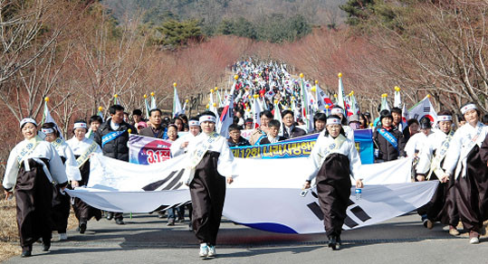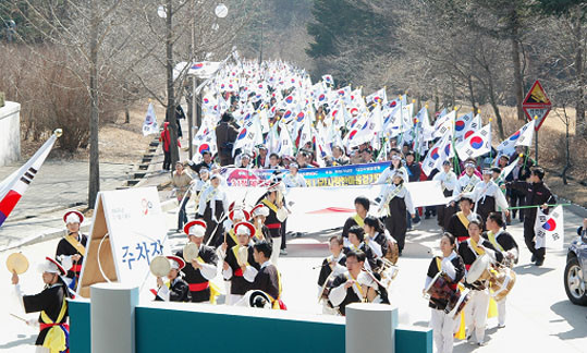 À̳¯ ¿ÀÀü 10½Ã¿¡´Â °¢ ±â°ü¡¤´ÜüÀå°ú À¯Á· µîÀÌ Âü¼®ÇÑ °¡¿îµ¥ 3.1Àý ±â³ä½ÄÀÌ µ¶¸³±â³ä°ü °Ü·¹ÀÇÁý¿¡¼ ¿¸®°í ¿ÀÀü 10½Ã40ºÐºÎÅÍ´Â ´ëÇÑÀû½ÊÀÚ»çõ¾ÈÁö±¸ÇùÀÇȸ(ȸÀå ±è¼±±æ), õ¾Èµ¿³²±¸ÀÚÀ²¹æ¹ü¿¬ÇÕ´ë(´ëÀå ¼¼º¼®), õ¾È3.29¸¸¼¼¿îµ¿±â³ä»ç¾÷ȸ(ȸÀå À̼º¼ö), ³ª¶ó»ç¶ûºÀ»ç´Ü(´ÜÀå ÀÓ¿µ¹¬)ÀÇ °øµ¿ÁÖ°üÀ¸·Î 3.1Á¤½Å°è½ÂÀ» À§ÇÑ ³ª¶ó»ç¶ûÇѸ¶À½°È±â´ëȸ°¡ µ¶¸³±â³ä°ü °Ü·¹ÀÇÅ«¸¶´ç °ú µ¶¸³±â³ä°ü ¾Õ ¸ñõ³ªµé¸ñ 4Km ±¸°£¿¡¼ ¿¸°´Ù.
