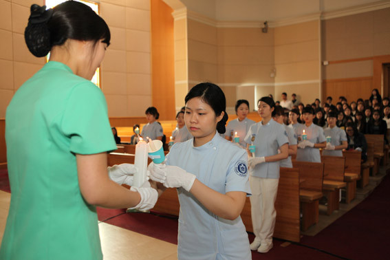 ½Å´ëö ÇлçºÎÃÑÀåÀº °Ý·Á»ç¸¦ ÅëÇØ ¡°±âµ¶±³ Á¤½Å°ú º¥Ã³ Á¤½ÅÀ» °®Ãá ÇöÀåÇü ÀÎÀ縦 ¾ç¼ºÇÏ´Â ¸ñÇ¥¸¦ °¡Áø È£¼´ëÇб³ °£È£Çаú ÇлýÀ¸·Î¼ ´Ã ´ë»óÀÚ¸¦ »ç¶ûÀ¸·Î µ½°í ¼¶±â´Â ±âµ¶±³ Á¤½Å°ú, ¾î¶² »óȲ¿¡¼µµ µµÀüÇÏ´Â º¥Ã³Á¤½ÅÀ» °¡Áö°í ½Ç½À¿¡ ÀÓÇÒ °ÍÀ» ´çºÎÇÑ´Ù.¡±¶ó°í ¸»Çß´Ù.
