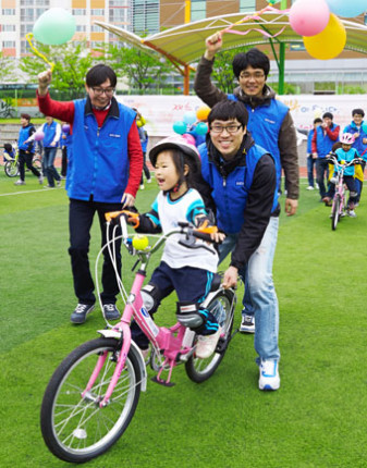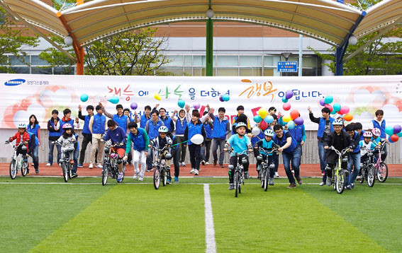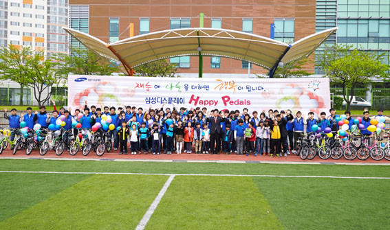| | ¡è¡è ¡ã»ï¼ºµð½ºÇ÷¹À̰¡ 3ÀÏ °³ÃÖÇÑ¡®ÇØÇÇ Æä´Þ(Happy Pedals)¡¯³ª´®Çà»ç¿¡¼ Á÷¿øµéÀÌ ¼Õ¼ö Á¶¸³ÇÑ ÀÚÀü°Å¸¦ ¼±¹° ¹ÞÀº ¾î¸°À̵éÀÌ Çª¸¥ Àܵð¹ç À§·Î ÈûÂ÷°Ô Æä´ÞÀ» ±¸¸£°í ÀÖ´Ù. | ¨Ï ¿Â¾ç½Å¹® | | ¾î¸°À̳¯À» ¾ÕµÐ Áö³ 5¿ù 3ÀÏ, »ï¼ºµð½ºÇ÷¹ÀÌ ¾Æ»ê»ç¾÷Àå ¿îµ¿ÀåÀÌ ½Å³ª°Ô ÀÚÀü°Å Æä´ÞÀ» ±¸¸£´Â ¾ÆÀ̵éÀÇ ¿ôÀ½¼Ò¸®·Î ³ÑÃijµ´Ù.