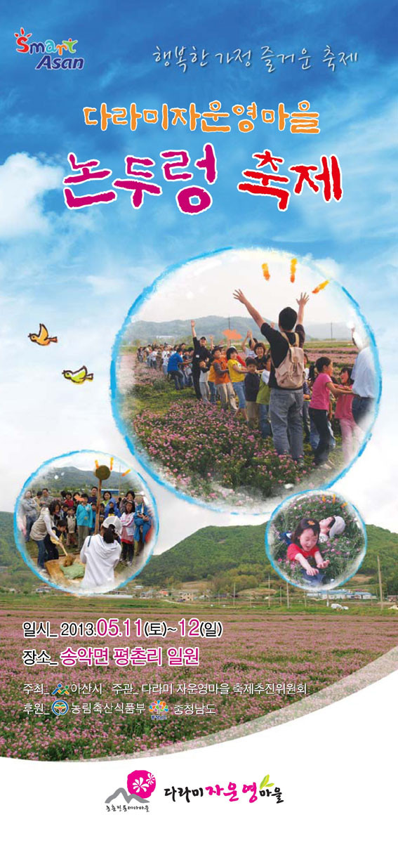 2013³â Àü±¹ ³ó¾îÃÌÃàÁ¦°¡ ¾Æ»ê½Ã ¼Û¾Ç¸é ÆòÃ̸®(´Ù¶ó¹Ì Àڿ ¸¶À»)¿¡¼ ¡®³íµÎ·· ÃàÁ¦¡¯¶ó´Â À̸§À¸·Î ¿À´Â 5¿ù 11~12ÀÏ ÀÌÆ²°£ °³ÃֵȴÙ.