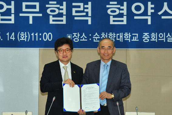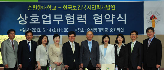 ¼øÃµÇâ´ëÇб³(ÃÑÀå ¼±³ÀÏ)°¡ Áö³ 5¿ù 14ÀÏ ¿ÀÀü 11½Ã30ºÐ ´ëÇк»ºÎ¿¡¼ Çѱ¹º¸°Çº¹ÁöÀη°³¹ß¿ø(¿øÀå ÀÌ»ó¿ë)°ú ¾÷¹«Çù·Â Çù¾àÀ» ü°áÇß´Ù.
