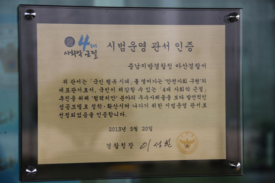 4´ë »çȸ¾Ç ¿¹¹æºÐ¾ß¿¡ ¿ì¼öÇÑ ½ÃÃ¥À» ½ÃÇàÁßÀÎ Àü±¹ 10°³ °ü¼°¡ °æÂûûÀ¸·ÎºÎÅÍ ÀÎÁõÆÐ¸¦ ¹Þ¾Ò°í ±×Áß ¾Æ»ê°æÂû¼´Â ¿Ü±¹ÀÎÄ¡¾ÈºÀ»ç´ÜÀÇ ¿Õ¼ºÇÑ È°µ¿À» ÀÎÁ¤¹Þ¾Æ ¿Ü±¹ÀÎ 4´ë »çȸ¾Ç ¿¹¹æÀ» À§ÇÑ ¹Î°æÇù·Â Ä¡¾ÈȰµ¿ °ÈºÐ¾ß¿¡ ¼±Á¤µÆ´Ù