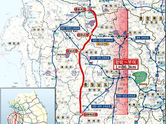 Á¦2¼ÇØ¾È °í¼Óµµ·Î´Â ¼ÇØ¾È °í¼Óµµ·ÎÀÇ Áö¡¤Á¤Ã¼ ÇØ¼Ò¸¦ À§ÇØ °æ±âµµ ÆòÅýÿ¡¼ Ãæ³²µµ ºÎ¿©±ºÀÇ 86.3§° ±¸°£¿¡ ´ëÇØ 4Â÷·Î µµ·Î¸¦ ½Å¼³ÇÏ´Â °èȹÀ¸·Î, 2008³â ¼ö¸³ÇÑ ±¤¿ª°æÁ¦±Ç 30´ë ¼±µµÇÁ·ÎÁ§Æ®»ç¾÷À¸·Î ¼±Á¤µÈµ¥ ÀÌ¾î ¹Ú±ÙÇý Á¤ºÎÀÇ Áö¿ª°ø¾àÀ¸·Î äÅõǴ µî Á߿伺ÀÌ ÀÎÁ¤µÅ ¿Ô´Ù.