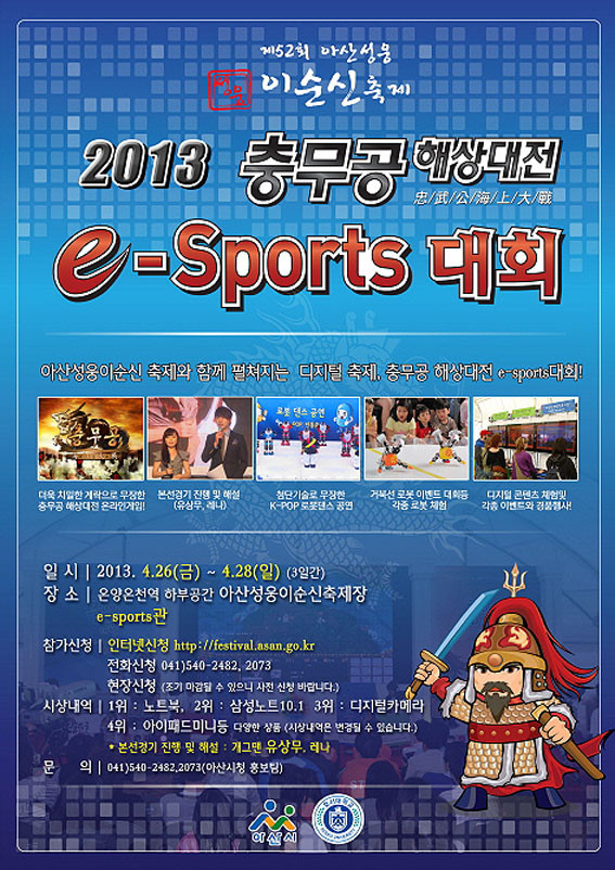 Á¦52ȸ ¾Æ»ê¼º¿õÀ̼ø½ÅÃàÁ¦(4¿ù 26~28ÀÏ)¸¦ ¸Â¾Æ ÃàÁ¦¼ÓÀÇ ½Å°³³ä µðÁöÅÐÃàÁ¦ÀÎ ¡®Á¦3ȸ Ãæ¹«°ø ÇØ»ó´ëÀü e-sports ÃàÁ¦¡¯°¡ °³ÃֵȴÙ.