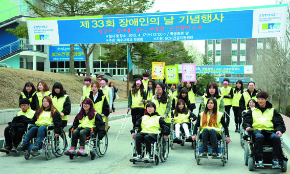 ¼øÃµÇâ´ëÇб³(ÃÑÀå ¼±³ÀÏ) Ư¼ö±³À°°ú ÇлýµéÀÌ Áö³ 4¿ù 17ÀϺÎÅÍ 18ÀϱîÁö Çлýȸ°ü ¾Õ¿¡¼ ¡®Àå¾ÖÀÎÀÇ ³¯¡¯À» ±â³äÇØ ¡®»ý°¢ÀÇ Àå¾Ö¸¦ ³Ñ¾î, ¡¸µû¶æÇÑ ¼øÃµÇâìÑÀ¸·Î¡¹¡¯¶ó´Â ÁÖÁ¦·Î Àå¾ÖÀΠüÇèÇà»ç ¹× Àå¾ÖÀÎ Àνݳ¼± Ä·ÆäÀÎÀ» ÆîÃÆ´Ù.