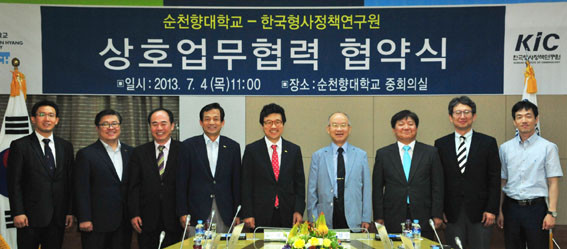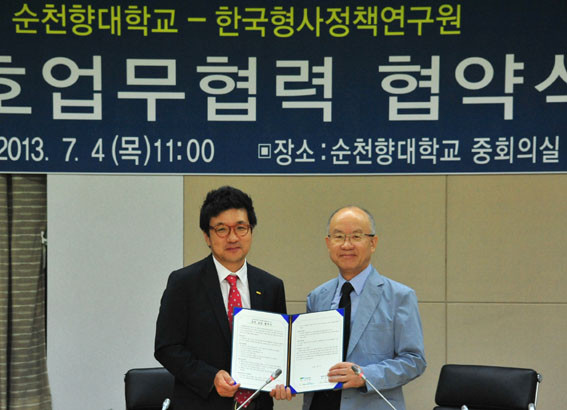 ¼øÃµÇâ´ëÇб³(ÃÑÀå ¼±³ÀÏ)°¡ Áö³ 7¿ù 4ÀÏ ¿ÀÀü 11½Ã ´ëÇк»ºÎ¿¡¼ Çѱ¹Çü»çÁ¤Ã¥¿¬±¸¿ø(¿øÀå ±èÀϼö)°ú ¾÷¹«Çù¾àÀ» ü°áÇß´Ù°í ¹àÇû´Ù.