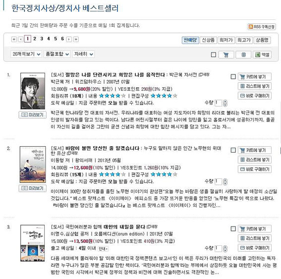 ¿À¸§ÃâÆÇ¿¡ µû¸£¸é ¡®´ëÇÑÀÇ ³»ÀÏÀ» ¹¯´Ù¡¯°¡ ÃÖ±Ù µµ¼Àü¹® ÀÎÅͳݼÁ¡ÀÎ ¡®¿¹½º24¡¯¿¡¼ »çȸºÎ¹® º£½ºÆ®¼¿·¯ 23À§, ±×Áß¿¡¼µµ Á¤Ä¡»çºÎ¹®¿¡¼ º£½ºÆ®¼¿·¯ 3À§¿¡ ¿Ã¶ú´Ù´Â °Í.
