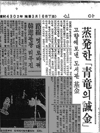 ±×·±µ¥ ÀÌ·± ³»¿ëÀ» ´ãÀº ÆíÁö¿Í ¼Û±ÝÇÑ µ·ÀÌ Ãµ¾È½ÃÀå¿¡°Ô Àü´ÞµÇÁö ¾Ê°í ´ç½Ã Ãѹ«°èÀåÀÌ ¿ìü±¹ °èÁ¸¦ °³¼³ÇØ º¸°üÇß´Ù´Â ½Å¾ÆÀϺ¸ ±â»ç³»¿ëÀ» 2005³â ¿©Àǵµ ±¹È¸µµ¼°ü¿¡¼ ¸¶ÀÌÅ©·Î Çʸ§À¸·Î º¸°üµÅ ÀÖ´ø ÀڷḦ ¿ì¿¬È÷ ¹ß°ßÇØ ±× µ·À» ÀÎÃâÇØ ¾çÁúÀÇ µµ¼¸¦ ±¸ÀÔ, ÀÌ ÀÇ¿øÀÇ ¸ð±³ÀΠõ¾È ¼ºÈ¯¿¡ ÀÖ´Â ¼º½ÅÃʵîÇб³¿¡ ±âÁõÇØ Áö¿ª¹Î°ú ÈĹèµé¿¡°Ô Å« ±Í°¨ÀÌ µÆ´Ù.