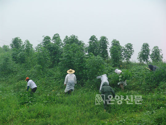 °Èñ¼ö ȸÀåÀº Á¦°ÅÀÛ¾÷¿¡ ¾Õ¼ Âü¼®Àڵ鿡°Ô ¡°»ýű³¶õ½Ä¹°Àº ¿ö³« ¹ø½Ä·ÂÀÌ ÁÁ¾Æ Çѹø ÀÚ¸®¸¦ ÀâÀ¸¸é ÅäÁ¾½Ä¹°À» ¿ÏÀü µµÅ½ÃŲ´Ù¡±¸ç ¡°À̸¦ ¸·±â À§Çؼ´Â ¾Æ»ê½Ã¹ÎµéÀÌ ÇØ¾ß ÇÒ ÀÏÀÌ´Ï, ¶¡À¸·Î Á¥À¸³ª ºñ·Î Á¥À¸³ª ¶È°°´Ù. ÀÌ¿Õ ¿À¼ÌÀ¸´Ï ¿½ÉÈ÷ »ýű³¶õ½Ä¹°À» Á¦°ÅÇØ Áֱ⠹ٶõ´Ù¡±°í ¸»Çß´Ù.