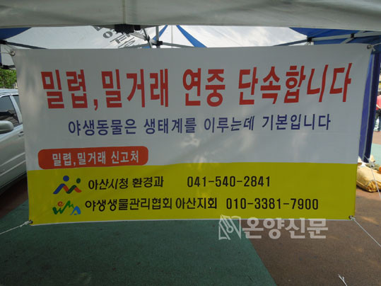 À̳¯ Àü½ÃÀåÀ» ÁöŰ´ø ÇÑ È¸¿øÀº ¡°¾ß»ýµ¿¹°ÀÌ »ìÁö ¾Ê´Â ȯ°æÀº »ç¶÷ ¶ÇÇÑ »ì ¼ö ¾ø´Â ȯ°æÀ» ÀǹÌÇϹǷΠ¾ß»ýµ¿¹°ÀÇ ¹Ð·Æ¡¤¹Ð°Å·¡ ±ÙÀýÀº ¿ì¸® ÀÚ½ÅÀ» À§ÇÑ ÀÏ¡±À̶ó¸ç ¡°¾ß»ý µ¿¡¤½Ä¹°ÀÇ ¹Ð·Æ¡¤¹Ð°Å·¡¸¦ ¹ß°ß½Ã ȯ°æ½Å¹®°í(±¹¹ø¾øÀÌ 128), À¯¿ª(Áö¿ª)ȯ°æÃ» ÀÚ¿¬È¯°æ°ú, ½Ã¡¤µµ(±º¡¤±¸) ȯ°æ°ú(¾Æ»ê½Ã 041-540-2841)¿Í °æÂû°ü¼, Çѱ¹¾ß»ýµ¿½Ä¹°º¸È£°ü¸®Çùȸ ´ëÀü¡¤Ãæ³²ÁöºÎ(041-932-6068)¿¡ ½Å°íÇØ´Þ¶ó¡±°í ´çºÎÇß´Ù.
