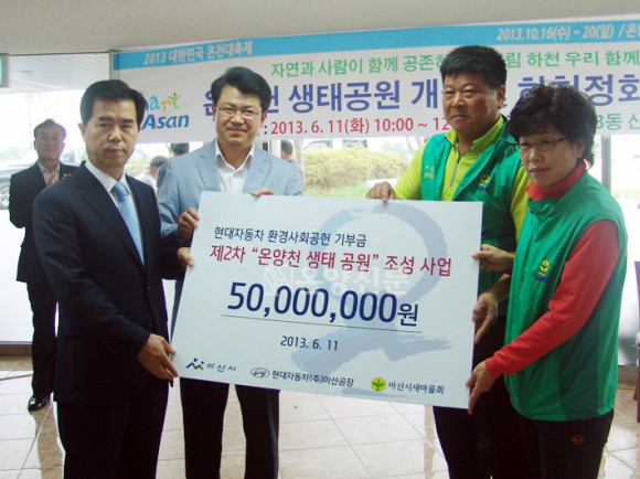 Áö³ÇØ Çö´ëÀÚµ¿Â÷(ÁÖ) ¾Æ»ê°øÀå(°øÀåÀå ±èÁßÇÑ)ÀÌ ¾Æ»ê½Ã¿Í ¾Æ»ê½Ã»õ¸¶À»È¸¿Í °øµ¿À¸·Î Çù¾àÇÏ¿© 1Â÷·Î ¿Â¾çõ »ýŰø¿ø »ç¾÷À» ÃßÁøÇÏ¿´À¸¸ç, ±Ý³â¿¡µµ ¾Æ»ê½Ã¿Í ¾Æ»ê»õ¸¶À»È¸°¡ °øµ¿À¸·Î ¿î¿µÇÏ´Â Á¦2Â÷ ¿Â¾çõ »ýŰø¿ø Á¶¼ºÀ» À§ÇÑ È¯°æ»çȸ°øÇå ±â±Ý 5õ¸¸¿øÀ» ±âºÎÇß´Ù.