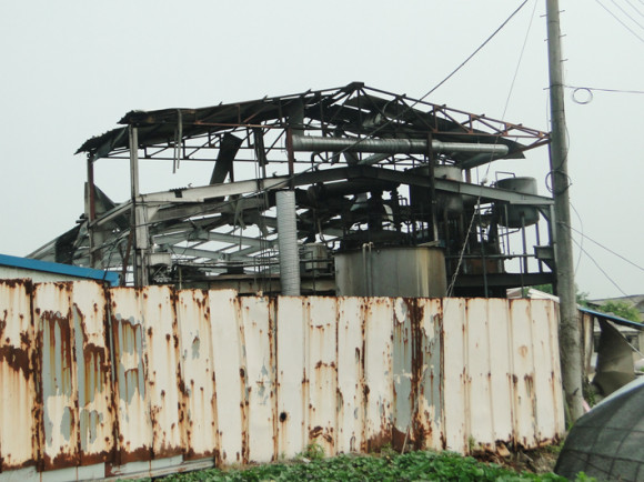 Æø¹ßÀÌ ¹ß»ýÇÑ °÷Àº °øÀå °Ç¹°·Î, Æø¹ßÀÌ Ä¿ °øÀåÀÇ ÃµÀå°ú Ãø¸éÀÇ Á¶¸³½Ä »÷µåÀ§Ä¡ ÆÇ³ÚÀÌ ¼ö½Ê¹ÌÅÍ ³¯¶ó °¡°í °øÀå µ¿Àº ¿ÏÀüÈ÷ ÆÄ¼Õ µÆ´Ù. ÀÌ Ãæ°ÝÀ¸·Î ÀÎÇØ ¿· »ç¹«½Ç µ¿µµ ÆÄ¼ÕÀÌ µÆÀ¸¸ç, ÁÖº¯ ³ó°¡µé°ú °¡±¸ ¶ÇÇÑ ³¯¾Æ¿Â ÀÜÇØ·Î ÀÎÇØ ³óÀÛ¹°ÀÌ ÈѼյǰí, Áý À¯¸®Ã¢ÀÌ ±úÁö´Â µî 10¿©°¡±¸°¡ ÇÇÇØ¸¦ ÀÔ¾ú´Ù.