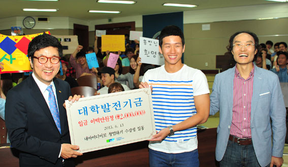 Çлýµé·ÎºÎÅÍ 200¸¸¿øÀÇ ´ëÇйßÀü±âºÎ±ÝÀ» ÀüÇØ ¹ÞÀº ¼ ÃÑÀåÀº ÀÌ ÀÚ¸®¿¡¼ ¡°´ëÇп¡¼ ¿½ÉÈ÷ °øºÎÇϰí Ȱµ¿ÇÏ´Â ÇлýµéÀ» À§ÇØ ÀåÇбÝÀ» ÁÖ´Â °ÍÀÌ ¿ì¼±Àε¥ ÀçÇлýµéÀÌ ¼ö¾÷Áß ´ëÇÐÀ» À§ÇØ ¹ßÀü±â±ÝÀ» ³½ °ÍÀº óÀ½ÀÏ °ÍÀÌ´Ù. ÇлýµéÀÇ ¿ë±â°¡ ºÎ·´°í ¼ö¾÷À» ÅëÇØ ¾ò¾îÁø ¹ßÀü±â±ÝÀ̶ó¼ Àǹ̰¡ Å©´Ù.¡±¶ó¸ç ¡°ÀڽۨÀ¸·Î ²ËÂù ÇлýµéÀ̶ó°í »ý°¢ÇÑ´Ù. °ÇÑ ½Å³ä°ú °¡Ä¡°üÀÌ ÇÊ¿äÇÏ´Ù¡±¶ó¸ç °Ý·ÁÇß´Ù.