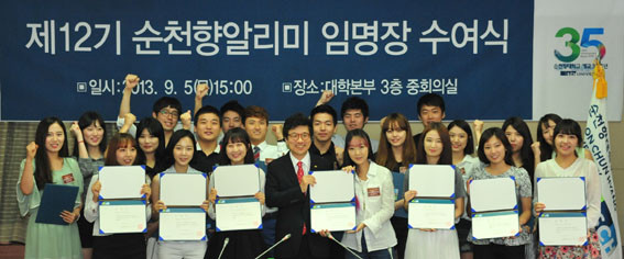¼øÃµÇâ´ëÇб³(ÃÑÀå ¼±³ÀÏ)´Â Áö³ 9¿ù 5ÀÏ ¿ÀÈÄ Á¦12±â ÀçÇлý È«º¸´ë»ç ¡®¾Ë¸®¹Ì¡¯ 22¸í(³²7¸í. ¿© 15¸í)À» ¼±¹ß, ÀÓ¸íÀå ¼ö¿©½ÄÀ» °¡Á³´Ù°í ¹àÇû´Ù.
