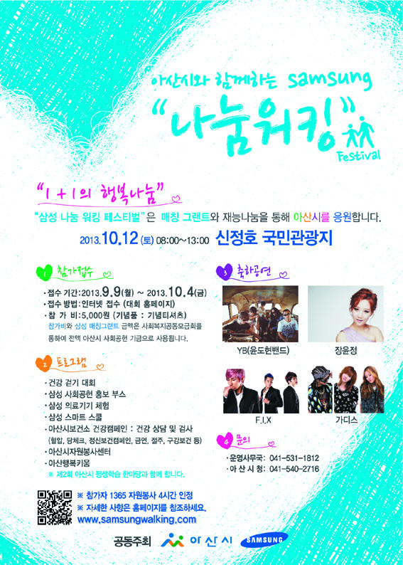 Âü°¡½ÅûÀº ¿À´Â 10¿ù 4ÀϱîÁö www.samsungwalking.com ¿¡¼ Á¢¼öÇÏ¸ç ±âŸ ÀÚ¼¼ÇÑ »çÇ×Àº Çà»ç ¿î¿µ»ç¹«±¹(041-531-1812)À¸·Î ¹®ÀÇÇÏ¸é µÈ´Ù.