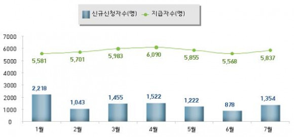 ¶ÇÇÑ, Áö³ 7¿ù ±¸Á÷±Þ¿© Áö±ÞÀÚ¼ö´Â 5õ837¸íÀ¸·Î Àü³â µ¿±â 5õ568¸í ´ëºñ 269¸í(4.8%)ÀÌ Áõ°¡Çß°í, ±¸Á÷±Þ¿© Áö±Þ¾×(55¾ï¿ø)Àº Àü³â µ¿¿ù 52¾ï¿ø ´ëºñ 3¾ï¿ø(5.8%)ÀÌ Áõ°¡ÇÑ °ÍÀ¸·Î ³ªÅ¸³µ´Ù.
