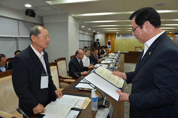 ÀüüȸÀÇ¿¡ ¾Õ¼ ÀÇȸ¿î¿µ, ÇàÁ¤ÀÚÄ¡, ¹®Èº¹Áö, ³ó¼ö»ê°æÁ¦, °Ç¼³¼Ò¹æ, ±³À° µî 6°³ ºÐ°úÀ§¿øÈ¸ 44¸í¿¡°Ô À§ÃËÀåÀ» ¼ö¿©Çß´Ù.