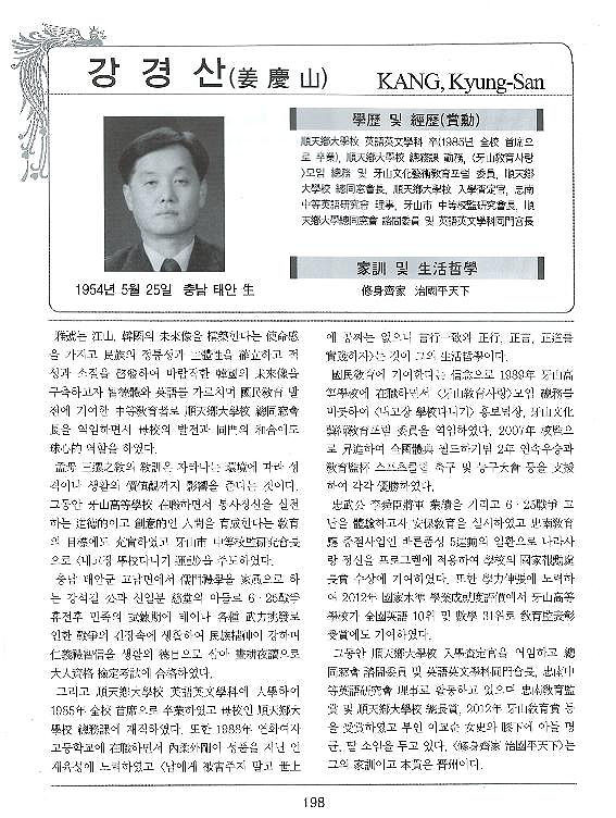 °°æ»ê ±³°¨Àº Áö³ 1985³â ¼øÃµÇâ´ë±³ ¿µ¾î¿µ¹®Çб³¸¦ Á¹¾÷ÇÏ°í ¸ð±³¿Í ¿¬È¿©°í¸¦ °ÅÃÄ ÇöÀç´Â ¾Æ»ê°íµîÇб³¿¡ ±³°¨À¸·Î ÀçÁ÷Çϰí ÀÖ´Ù.