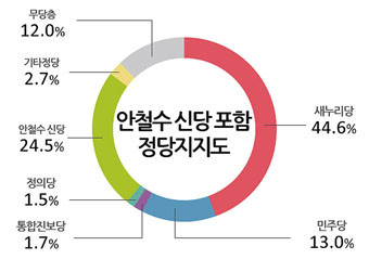 ¡®¾Èö¼ö½Å´ç¡¯À» Æ÷ÇÔÇÔ Á¤´çÁöÁöµµ¿¡¼ ¡®¾Èö¼ö½Å´ç¡¯ÀÌ 20% ÃÊÁ߹ݴë ÁöÁöÀ²À» À¯ÁöÇÏ´Â °ÍÀ¸·Î ³ªÅ¸³µ´Ù. ±âÁ¸ ¹ÎÁÖ´ç ÁöÁöÀÚ¿Í ¹«´çÃþÀÌ ¡®¾Èö¼ö½Å´ç¡¯ÀÇ ÁÖ¿ä ÁöÁö ¼¼·ÂÀÎ °ÍÀ¸·Î ºÐ¼®µÆ´Ù.