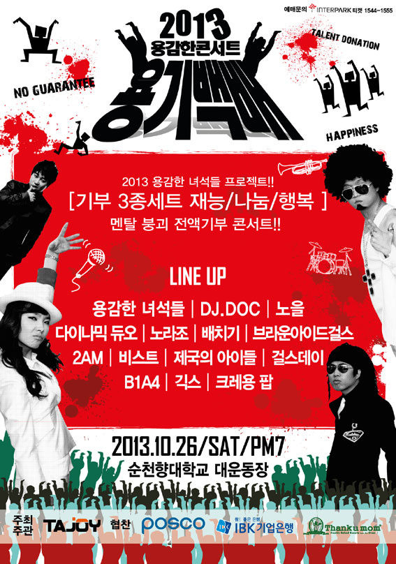 | | ¨Ï ¿Â¾ç½Å¹® | | À̹ø °ø¿¬¿¡´Â KBS2TV °³±×ÄܼƮÀÇ ÀαâÄڳʷΠ»ç¶û¹Þ¾Ò´ø ¡®¿ë°¨ÇÑ ³à¼®µé¡¯°ú ÇÔ²² DJ DOC, ºñ½ºÆ®, ´ÙÀ̳ª¹Íµà¿À, ³ë¶óÁ¶, ¹èÄ¡±â, 2AM, B1A4, ºê¶ó¿î¾ÆÀ̵å°É½º, Á¦±¹ÀÇ ¾ÆÀ̵é, ³ëÀ», °É½ºµ¥ÀÌ, ±ã½º, Å©·¹¿ëÆË µî ±¹³» ÃÖÁ¤»ó±Þ ½ºÅ¸µéÀÌ Âü¿©ÇØ Àç´É±âºÎ·Î ¿¸®´Â ÄܼƮ·Î ÆÒµéÀº ¹°·Ð ¾Æ»ê½Ã¿Í õ¾È½Ã Áö¿ª û¼Ò³â, ÀϹݽùεé±îÁöµµ °ü½ÉÀÌ ¶ß°Å¿öÁö°í ÀÖ´Ù.