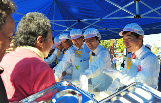 | | ¡è¡è ¡ãÀÌ ³¯ Áö¿ª¾î¸£½ÅÀ» ´ë»óÀ¸·Î ÆîÄ£ ¡®»ç¶ûÀÇ ¹äÂ÷¡¯ ¹«·á¹è½Ä ºÀ»ç¿¡¼ ¼±³ÀÏ ¼øÃµÇâ´ë ÃÑÀå(¿À¸¥ÂÊ µÎ¹øÂ°)ÀÌ IBK±â¾÷ÀºÇà ±è¼®ÁØ ºÎÇàÀå(¿À¸¥ÂÊ Ã¹ ¹øÂ°)°ú ÇÔ²² ºÀ»çȰµ¿¿¡ Âü¿©Çϰí ÀÖ´Ù. | ¨Ï ¿Â¾ç½Å¹® | | ÀÌ ³¯ ¹è½Ä ºÀ»ç¿¡´Â Àα٠¼øÃµÇâ´ë ¼±³ÀÏ ÃÑÀåµµ Àû±ØÀûÀ¸·Î Âü¿©ÇØ Áö¿ª¹Îµé°ú °ü°èÀÚµé·ÎºÎÅÍ ÁÖ¸ñÀ» ¹Þ¾Ò´Ù.