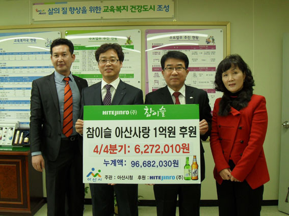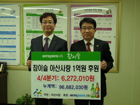 ÂüÀ̽½ ¾Æ»ê»ç¶û 1¾ï¿ø ÈÄ¿ø±ÝÀº Áö³ 2010³â 4¿ù 20ÀÏ ¾Æ»ê½Ã¿Í ÇÏÀÌÆ®Áø·Î(ÁÖ)°¡ ¾Æ»êÁö¿ª¿¡¼ ÆÇ¸ÅµÇ´Â ¼ÒÁÖ ÀÌÀͱÝ(º´´ç 3¿ø)À» Àû¸³ÇÏ¿© ¾Æ»ê½Ã °ÅÁÖ Àú¼ÒµæÃþÀ» Áö¿øÇϱâ À§ÇØ ¾÷¹«Çù¾àÀ» ü°áÇϰí 2010³â 4¿ù ÀÌÈÄ ÇöÀç±îÁö 9õ41¸¸¿øÀÇ ÈÄ¿ø±ÝÀ» Àü´ÞÇß´Ù.