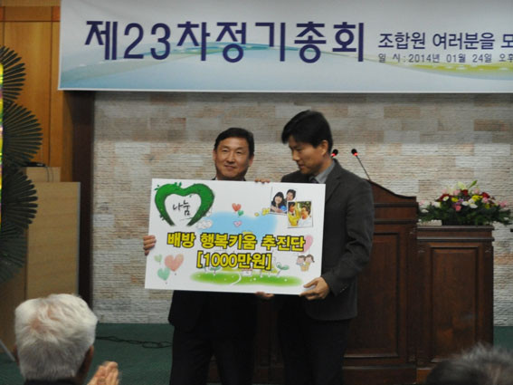 | | ¨Ï ¿Â¾ç½Å¹® | | ¾Æ»êµ¿ºÎ½ÅÇù(ÀÌ»çÀå Á¶¹é¼±)Àº Áö³ 1¿ù 24ÀÏ È£¼¿þµùȦ¿¡¼ Á¤±âÃÑȸ¸¦ °®°í, ¹è¹æÀ¾ ÇູŰ¿òÃßÁø´Ü(´ÜÀå ¿Àº´±¹)°ú °ü³» Àú¼Òµæ°¡Á¤ Àڳ࿡°Ô ÈÄ¿ø±Ý ÃÑ 1õ540¸¸¿øÀ» Àü´ÞÇß´Ù.