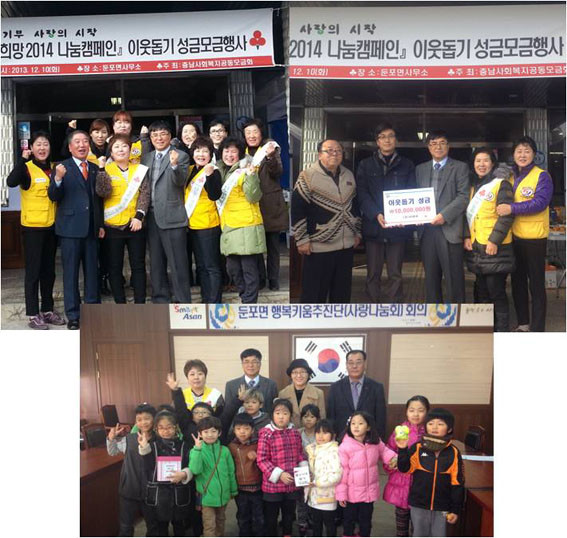 Áö¿ª»çȸ ³ª´®¹®È È®»ê°ú Áö¿ªÀÇ º¹ÁöÁõÁøÀ» À§ÇØ ½Ç½ÃÇϰí ÀÖ´Â ¡®Èñ¸Á 2014 ³ª´®Ä·ÆäÀΡ¯Àº ³»³â 1¿ù 31ÀϱîÁö ÀÌ¿ô»ç¶û ¼º±ÝÀ» ¸ð±ÝÇϸç, À̳¯ µÐÆ÷¸é ÁýÁ߸ð±Ý Çà»ç´Â À¾¡¤¸é ´ÜÀ§¿¡¼´Â óÀ½À¸·Î ½Ç½ÃÇÑ Çà»ç·Î ´ë´ëÀûÀÎ ¸ð±ÝȰµ¿À» Àü°³Çß´Ù.