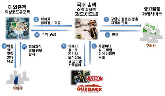 ÀÌ¿Í °°Àº ¹æ¹ýÀ¸·Î, ½º¸¶Æ® Æù »ç¿ëÀÚµéÀÇ ¼Ò¾×°áÀç Á¤º¸¸¦ °¡·Îæ °ÍÀ¸·Î µå·¯³µÀ¸¸ç, À̸ð¾¾(50¼¼), ±è¸ð¾¾(39¼¼)´Â À§¿Í °°ÀÌ °¡·Îæ ÇÇÇØÀÚµéÀÇ ¼Ò¾×°áÁ¦ Á¤º¸¸¦ ¸Þ½ÅÀú¸¦ ÅëÇØ ³Ñ°Ü¹Þ¾Æ, ±× Á¤º¸¸¦ ÀÌ¿ëÇØ ¾Æ¿ô¹é, º÷½º µî ¸ð¹ÙÀÏ ÄíÆùÀ» ¼Ò¾× °áÁ¦¸¦ ÅëÇØ ±¸ÀÔÇϰí, À̸¦ ³×À̹ö Áß°í³ª¶ó Ä«Æä °Ô½ÃÆÇÀ» ÅëÇØ ½ÇÁ¦ º¸´Ù ½Ñ °ª¿¡ ÆÇ¸Å¡¤Çö±ÝÈ ÇØ À̵æÀ» ÃëÇÑ °ÍÀ¸·Î ¹àÇôÁ³´Ù.