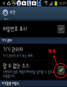 ¡Øº¸¾È¼³Á¤ °È¹æ¹ý : ȯ°æ¼³Á¤>º¸¾È>µð¹ÙÀ̽º °ü¸®>¡®¾Ë ¼ö ¾ø´Â Ãâ󡯿¡ Vüũ°¡ µÇ¾î ÀÖ´Ù¸é ÇØÁ¦