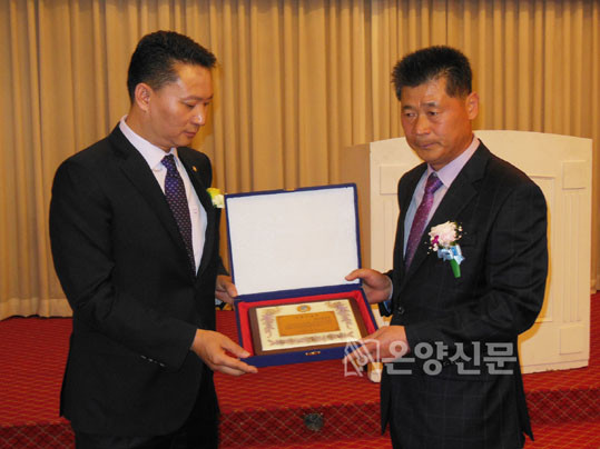 | | ¡è¡è Á¤µÎÈñ ½ÅÀÓȸÀåÀÌ ¹Ú¿ø±Ù ÀÌÀÓȸÀå¿¡°Ô ÀçÁ÷±â³äÆÐ¸¦ Àü´ÞÇϰí ÀÖ´Ù. | ¨Ï ¿Â¾ç½Å¹® | |