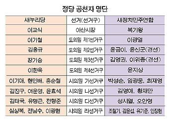 °¡¼±°Å±¸¿¡ »õ´©¸®´ç À̱â¾Ö, ÇöÀιè, È«¼øÃ¶ »õÁ¤Ä¡¹ÎÁÖ¿¬ÇÕÀº ¹Ú¼º¼ø, ÀÓ±¤¿õ, ÃÖÀ翵 ³ª¼±°Å±¸´Â »õ´©¸®´ç ±èÁø±¸, ¿©¿î¿µ, À±È¿¼® »õÁ¤Ä¡¹ÎÁÖ¿¬ÇÕÀº ±è¿µ¾Ö, ȲÀ縸 ¿¹ºñ È帰¡ °øÃµÀÚ·Î °áÁ¤µÆ´Ù.