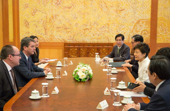 ¹Ú±ÙÇý ´ëÅë·ÉÀº Áö³ 5¿ù 16ÀÏ »ê¾÷ºÎ ÃÊûÀ¸·Î ¹æÇÑÇÑ È£º£¸£Åä ¾ÆÁ¦º£µµ ¼¼°è¹«¿ª±â±¸(WTO) »ç¹«ÃÑÀåÀ» Á¢°ßÇϰí, ±Û·Î¹ú ȯ°æº¯È¿¡ µû¸¥ ´ÙÀÚÅë»óüÁ¦ Àü¸Á, µµÇϰ³¹ß¾ÆÁ¨´Ù(Doha Development Agenda, DDA) Çù»ó ÁøÀü ¹æ¾È, ¿ì¸®³ª¶ó¿Í WTO°£ Çù·Â °È ¹æ¾È µî¿¡ ´ëÇØ ÀǰßÀ» ±³È¯Çß´Ù.