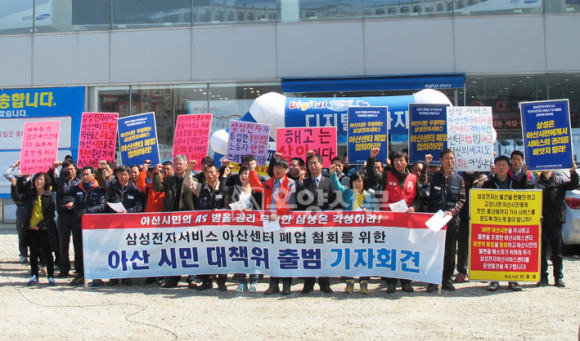 8ÀÏ, Æó¾÷ÇÑ »ï¼ºÀüÀÚ¼ºñ½º ¾Æ»ê¼¾ÅÍ ¾Õ¿¡¼´Â »ï¼ºÀüÀÚ¼ºñ½º ¾Æ»ê¼¾ÅÍ Æó¾÷ öȸ¸¦ À§ÇÑ ¾Æ»ê½Ã¹Î ´ëÃ¥À§ Ãâ¹ü½Ä°ú ±âÀÚȸ°ßÀÌ ÁøÇàµÆ´Ù.