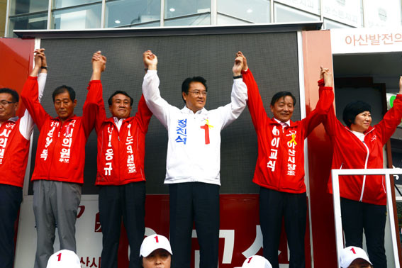 Á¤Áø¼® Ãæ³²µµÁö»ç È帴 ¡°À̹ø Ãæ³²Áö»ç ¼±°Å´Â º¸¼öÁø¿µ°ú Áøº¸Áø¿µÀÇ Â÷¼¼´ë ÁÖÀÚµéÀÌ Áø°Ë½ÂºÎ¸¦ ¹úÀÌ´Â Á¤Ã¥À¸·Î Ãæ³²¹ßÀüÀÇ ¸í¿îÀ» °É°í ¹úÀÌ´Â °æÀïÀÇ ¹«´ë¡±¶ó°í ÁÖÀåÇϰí, À̹ø ¼±°Å¾ß ¸»·Î Ãæ³²ÀÇ ¹ßÀü¿¡ Áß´ëÇÑ ±â·Î°¡ µÉ °ÍÀ̶ó¸ç Áý±Ç´çÀÎ »õ´©¸®´ç È常¦ ¼±ÅÃÇÏ¿© ´Þ¶ó°í È£¼ÒÇß´Ù.