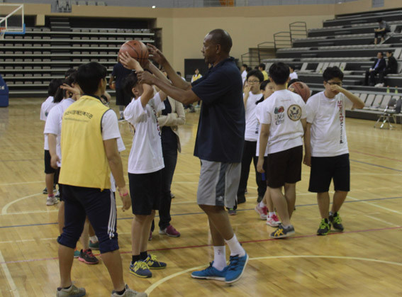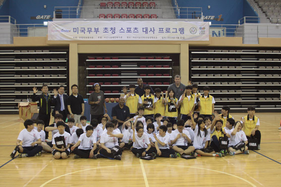 Ú¸ ±¹¹«ºÎ ½ºÆ÷Ã÷ ´ë»çÀÎ ÀüÁ÷ Àü¹Ì³ó±¸Çùȸ(NBA) ¼±¼ö ¡®¾Ë·º½º À×±Û¸®½Ã¡¯¿Í ÀüÁ÷ Àü¹Ì¿©ÀÚ³ó±¸Çùȸ(WNBA) ¼±¼ö ¡®³ªÀÌÄÉ»þ ¼¼ÀÏÁ°¡ Àå¾Öû¼Ò³âµé¿¡°Ô ³ó±¸ °ü·Ã ±â¼úÀ» Àü¼öÇϸç Àΰ£ÀÇ Á¸¾ö¼º º¸Àå ¹× ¿ÏÀü Æ÷¿ëÀ» Àå·ÁÇÏ°í ±× Àå¾Ö¹°À» ±Øº¹ÇÏ´Â °ÍÀ» ¸ñÇ¥·Î ÁøÇàµÈ À̹ø ³ó±¸Å¬¸®´Ð¿¡´Â ¾Æ»êÁö¿ª Ư¼öÇб޿¡ ÀçÇÐ ÁßÀÎ Àå¾ÖÇлý 40¿©¸íÀÌ Âü°¡Çß´Ù.