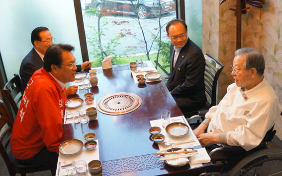 ´ÙÀ½Àº ¡®3±è½Ã´ë¡¯¶ó°í ÇÏ´Â Çö´ë Çѱ¹Á¤Ä¡»çÀÇ ÇÑ ÃàÀ¸·Î¼, »ê¾÷Ƚôë ÀÌ·¡ Á¤°è 2ÀÎÀÚÀÌÀÚ Á¤ È常¦ Á÷Á¢ Á¤°è¿¡ ÀÔ¹®½ÃŲ ¡®Á¤Ä¡Àû ½º½Â¡¯ÀÇ Àο¬À» °®´Â ±è Àü ÃѸ®°¡ Á¤ Èĺ¸¿ÍÀÇ °Ý·Á¸¸Âù Áß¿¡ ³»³õÀº ¼Òȸ¿¡ ´ëÇÑ Âü¼®ÀÚ Àü¾ð, ±×¸®°í ¸¸Âù ¸»¹Ì¿¡ Áö¿ª ¾ð·Ð»ç Á¤Ä¡ºÎ Ç® ±âÀÚÀÇ ¿¹¹æÀ» ¹Þ°í ÁÖ°í¹ÞÀº ÀϹ®ÀÏ´ä ¿öµùÀÌ´Ù.