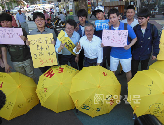 ¼±°Å ¿îµ¿ °³½Ã ÈÄ Ã³À½ÀÎ ÁýÁß À¯¼¼¿¡¼ º¹ È帴 ¡°¼¼¿ùÈ£ Âü»ç ÀÌÈÄ ¸¶À½ÀÌ ¹«°Å¿ö ÇöÀå À§ÁÖÀÇ ¡®¹ßǰÀ¯¼¼¡¯¸¦ ¹ú¿´Áö¸¸, ¿À´Ã ¸¸ÅÀº ¹®ÀçÀÎ ÀÇ¿ø°ú ÇÔ²² ´Ü»ó¿¡ ¿Ã¶ú´Ù¡±°í ¿¬¼³ ÀÌÀ¯¸¦ ¹àÇû´Ù.