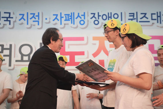 À̹ø ´ëȸ¿¡´Â ÄûÁîÇ®À̸¦ ÅëÇØ ÁöÀû¡¤ÀÚÆó¼º Àå¾ÖÀÎÀÇ Àڽۨ Çâ»ó ¹× Àå¾ÖÀνݳ¼±À» ¸ñÀûÀ¸·Î Àü±¹¿¡¼ 50°³ ÆÀÀÌ Âü¿©ÇÏ¿´À¸¸ç ÁßµµÅ»¶ô ¾øÀÌ ¸ðµç ÆÀÀÌ 50¹®Ç×ÀÇ ¹®Á¦¸¦ Ç®ÀÌÇϰí Á¤´ä ¼ö¸¦ Áý°èÇÏ´Â ¹æ½ÄÀ¸·Î Âü°¡ÆÀ ¸ðµÎ¿¡°Ô ³¡±îÁö ÃÖ¼±À» ´ÙÇÒ ¼ö ÀÖ´Â ±âȸ¸¦ Á¦°øÇÏ´Â ¹æ½ÄÀ¸·Î ÁøÇàµÆ´Ù.