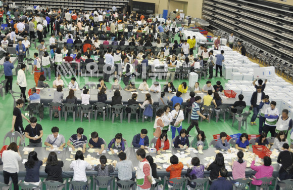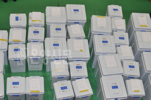 ¿ÀÈÄ 6½Ã ÅõÇ¥ ¸¶°¨°ú µ¿½Ã¿¡ ¾Æ»ê½Ã Àüü 85°³ ÅõÇ¥±¸¿¡¼ ÅõÇ¥¸¦ ¸¶Ä¡°í, À̼ø½ÅüÀ°°ü¿¡ ¸¶·ÃµÈ °³Ç¥ÀåÀ¸·Î ÅõÇ¥ÇÔÀÌ µµÂøÇÏ¸é¼ 19½Ã ÇöÀç ¼øÁ¶·Î¿î °³Ç¥°¡ ÁøÇà ÁßÀÌ´Ù.