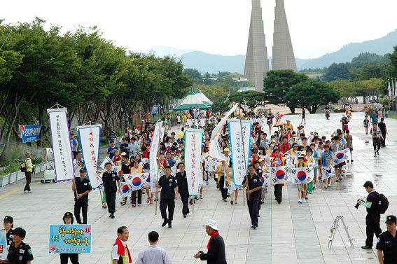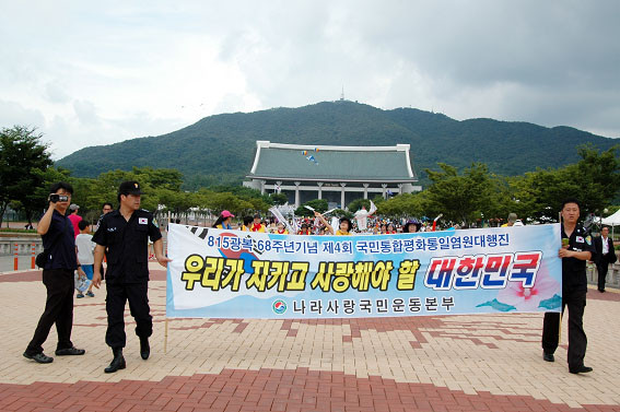 ¡®ÇÔ²²°¡ÀÚ ÅëÇÕ°ú ÅëÀϷΡ¯¶ó´Â ÁÖÁ¦·Î ¿¸®´Â À̹ø Çà»ç´Â 8¿ù 15ÀÏ ¿ÀÀü 10½Ã40ºÐ µ¶¸³±â³ä°ü °Ü·¹ÀÇ Å«¸¶´ç¿¡ Áý°áÇÑ Âü°¡ÀÚµéÀº È¿ø±¹¾Ç¿øÇ³¹°´ÜÀ» ¼±µÎ·Î µ¶¸³±â³ä°ü ÅëÀÏ¿°¿øÀÇ µ¿»ê±îÁö ¾à 1kmÀÇ ±¸°£¿¡¼ ±¹¹ÎÅëÇÕÆòÈÅëÀÏ¿°¿ø °È±â´ëÇàÁø Çà»ç¸¦ °®´Â´Ù.
