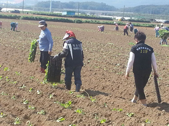 ±èÀå¹èÃ߸¦ ½É´Â ½Ã±â, À¯µ¶ ÀϼÕÀÌ ºÎÁ·ÇÑ ³óÃ̸¶À»ÀÇ ÀÏ¼Õ µ½±â Çà»ç¿¡ ¹è¹æÀ¾ ¿©¼ºÀÇ¿ë¼Ò¹æ´ë Àå¿Á¼ø ´ëÀåÀ» ºñ·ÔÇØ 30¿©¸íÀÇ ´ë¿øµéÀÌ Âü¿©ÇØ ¾ÆÄ§ ÀÏÂïºÎÅÍ ¿ÀÈÄ ´Ê°Ô±îÁö ¹èÃß ¸ðÁ¾À» ³ª¸£°í, ½É°í, ¹°À» ÁÖ´Â µî ¹èÃß¹ç ÁÖº¯ Á¤¸®¸¦ ÇÏ¸ç ±¸½½¶¡À» Èê·È´Ù.