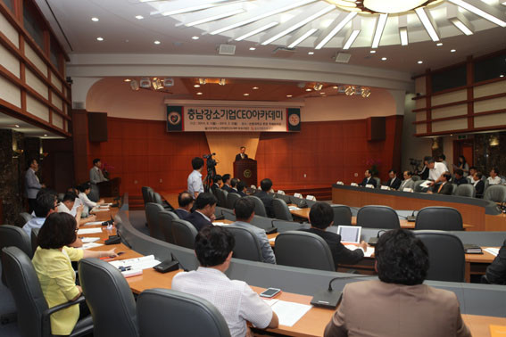 Çù¾à½ÄÀÌ ³¡³ ÈÄ ¾à 80¸íÀÇ Áß¼Ò±â¾÷ CEO°¡ Âü¼®ÇÑ °¡¿îµ¥ ¡®Ãæ³²°¼Ò±â¾÷CEO¾ÆÄ«µ¥¹Ì¡¯ ±³À° °³°½ÄÀ» °¡Á³°í, ¡®Ã¢Á¶°æÁ¦½Ã´ëÀÇ Áß¼Ò±â¾÷ Áö¿ø¹æÇ⡯À» ÁÖÁ¦·Î ÇÑ Áß¼Ò±â¾÷ÁøÈï°ø´Ü ¹Úö±Ô ÀÌ»çÀåÀÇ °ÀǸ¦ ½ÃÀÛÀ¸·Î Ãæ³²°¼Ò±â¾÷CEO¾ÆÄ«µ¥¹Ì ±³À°ÀÌ ½ÃÀ۵ƴÙ.