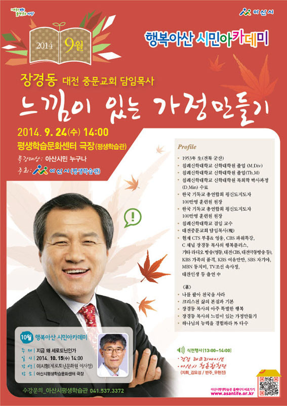 ¾Æ»ê½Ã Æò»ýÇнÀ¹®È¼¾ÅͰ¡ ½Ã¹ÎµéÀÇ ¹®È ÇâÀ¯¸¦ À§ÇØ ¿À´Â 9¿ù 24ÀÏ ¿ÀÈÄ 2½Ã Æò»ýÇнÀ¹®È¼¾ÅÍ ±ØÀå(Æò»ýÇнÀ°ü)¿¡¼ Àå°æµ¿ ¸ñ»ç¸¦ ÃÊÃ»ÇØ ¡®´À³¦ÀÌ ÀÖ´Â °¡Á¤ ¸¸µé±â¡¯¶ó´Â ÁÖÁ¦·Î °¿¬À» °³ÃÖÇÑ´Ù.